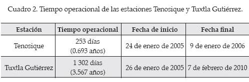 La estación de Tenosique sólo operó durante el año 2005, mientras que la de Tuxtla Gutiérrez funcionó durante el periodo 2005-2010 (cuadro 2).