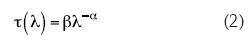 donde λ es la longitud de onda en micrómetros (μm), y α y β son dos parámetros de ajuste. El parámetro α es el exponente de Ångström, que está directamente relacionado con la distribución de tamaños de los aerosoles. Este parámetro, en teoría, toma valores de 0 a 4, donde los valores más bajos están asociados con partículas grandes (Wagner y Silva, 2008). El parámetro β es el coeficiente de turbiedad y coincide con el espesor óptico de aerosoles correspondiente a λ = 1 μm.