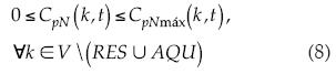 Las ecuaciones del balance y de la contaminación para un nodo general k durante cada periodo t se representan como: