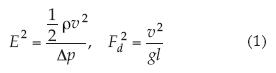 donde ρ, v, Δp, g y l son, respectivamente, densidad, velocidad, variación de presión, gravedad y una longitud característica.
