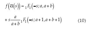 Por tanto, la función 1F1(s;a,a+b), solución de la ecuación diferencial de Kummer, determina de forma única al coeficiente de descarga, una vez que se han fijado los dos parámetros de forma. Sin embargo, de acuerdo con nuestra hipótesis, existe una relación entre los dos parámetros, relación que depende del índice de ocupación espacial o bien del índice de estabilidad Lévy.