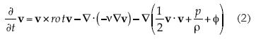 donde v, p, ρ, v, t y ɸ son velocidad, presión, densidad, viscosidad cinemática, tiempo y potencial escalar de la fuerza externa, como la gravedad. Integrando a lo largo de una línea de flujo entre dos cualesquiera de sus puntos, y bajo la hipótesis de flujo estacionario e inviscoso, surge la ecuación de D. Bernoulli (1738). Se trata de una ecuación de la energía y expresa la constancia de la misma. La expresión
