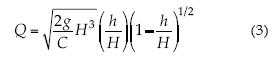 1. El coeficiente de descarga adopta la forma covariante que se deriva del teorema de Torricelli o vertedor de cresta ancha.