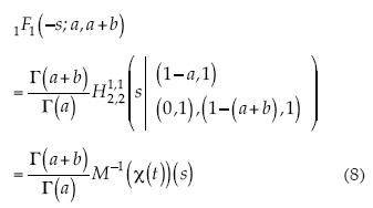 Por otra parte, esa función tiene también su representación como función Fox y, por tanto, como transformada inversa de Mellin (Metzler y Klafter, 2000):