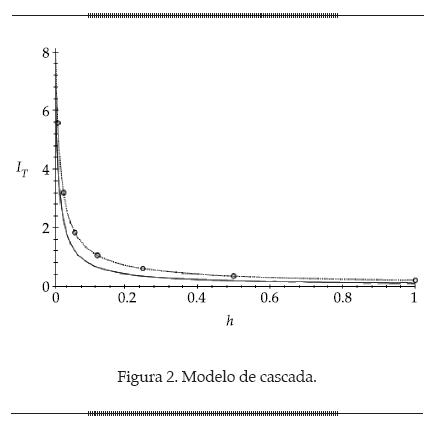 . El modelo de cascada se ilustra en la figura 2. En el eje vertical se representa la intensidad de la turbulencia IT y en el horizontal h = qn. La curva de trazos es