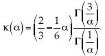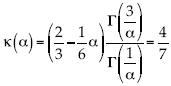 , así que en la distribución b = 5a. La potencia de la velocidad σ(α) = 1, por lo tanto coincide con la de Kolmogorov. El cociente de funciones gammas puede expresarse como una función Pochhammer