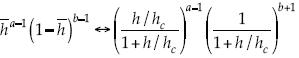 . Desde el punto de vista de la teoría de probabilidades, el factor (1h/H)b1 se ve como proporcional al flujo (volumen) por unidad de tiempo y por unidad de área y, por tanto, representa la densidad de corriente de probabilidad; en tanto, el factor (h/H)a1, como proporcional al área, representa la función de riesgo, por lo que el producto de los dos designa la probabilidad por unidad de tiempo, y donde h/H es la cota superior del dominio de los valores que puede asumir la variable aleatoria en el intervalo (∞, h/H). Aunque es igualmente probable definir al primero como el flujo y al segundo como el área, porque bastaría con hacer un cambio de variable y medir h/H de derecha a izquierda, y no al revés, como se acostumbra, lo que equivale al cambio