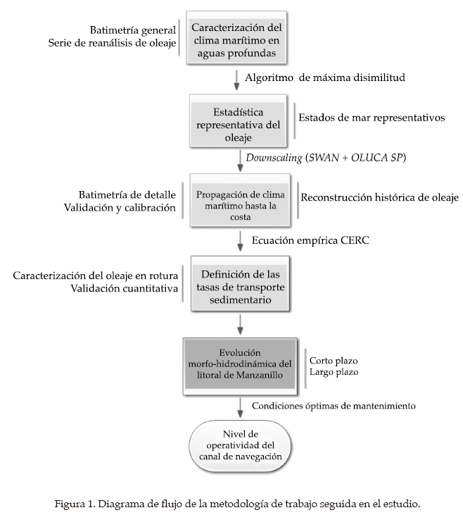 Para poder cuantificar las posibles consecuencias en la hidrodinámica de la zona litoral, el presente estudio propone el uso de diferentes herramientas estadísticas, modelación numérica e interpretación de datos instrumentales, que permiten vislumbrar el funcionamiento de la costa actual y futura, a través del entendimiento de los procesos de oleaje en aguas profundas, su propagación hacia la costa, su interacción con ésta e interrelación con los diferentes elementos costeros (p. ej., las tendencias sedimentarias a distintas escalas de tiempo), considerando distintos estados o alternativas de análisis.