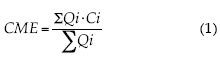 La concentración media del evento puede ser obtenida utilizando la ecuación (1) (Novotny, 1992):