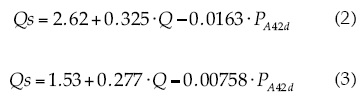El ajuste mostrado por las ecuaciones (2) y (3) fue aceptable (R2 igual a 95.5% y 99.1%, respectivamente) y el valor de "p" de las distintas variables explicativas indica que éstas son significativas para un intervalo de confianza del 95%, según los datos disponibles.