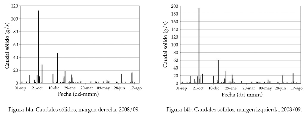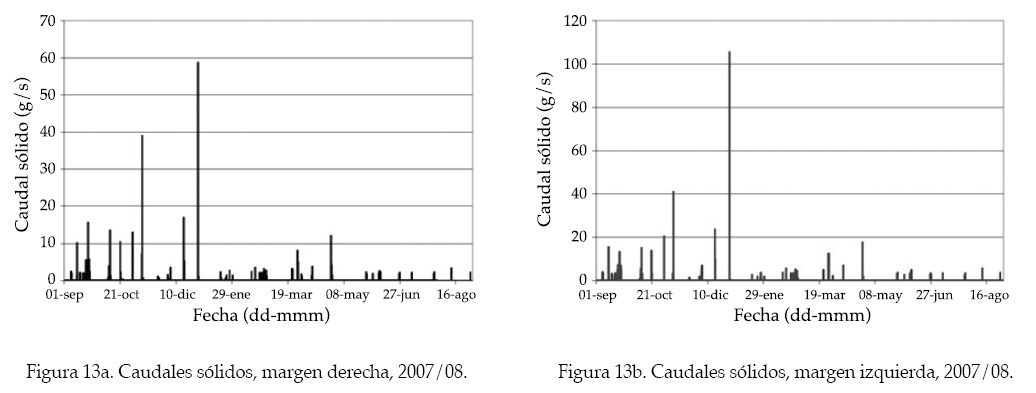 Por lo expuesto, en los meses de septiembre a diciembre se produce el lavado de la cuenca, generando el 60% del sedimento transportado en el año (cuadro 4).