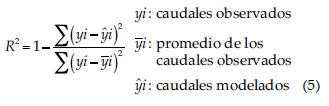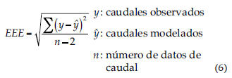 Como se aprecia en el cuadro 4, fue el modelo exponencial 3 el que obtuvo los mejores resultados, es decir, el menor cociente entre el EEE y el promedio de los caudales observados.