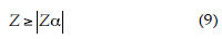 Donde Ζα: valor crítico obtenido de la tabla normal estándar, a un nivel de significancia de α del orden de 0.05 y 0.01.