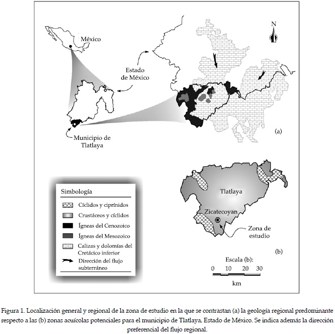 La zona de estudio se encuentra asociada con una unidad estructural de orden mayor denominada Sierra Madre del Sur (Demant, 1981; Ferrari, 2000); esta cadena montañosa compuesta principalmente por un basamento de rocas metamórficas, desplazada durante el Jurásico, se integra a menor escala en la cuenca del río Balsas. Esta área sirve de base para otras formaciones impermeables que integran dolomías, calizas recristalizadas y lechos rojos compuestos de arcillas, arenas y limo del Paleozoico, Triásico y Jurásico. Aunque la unidad incluye una gran diversidad de formaciones de desigual litología y edad, resaltan las rocas carbonatadas, en su mayoría de tipo brechoide, intercaladas lateralmente con materiales de naturaleza variable, que incluyen limolitas calcáreas, areniscas de grano fino, y calizas arcillosas y dolomitizadas, siendo estas últimas predominantes hacia el techo de las secuencias estratigráficas. La estructuración de los materiales determina un moderado número de sistemas hidrogeológicos de gran interés local, cuyo funcionamiento está asociado con numerosos manantiales con caudales que muestran una elevada regularidad interanual (López-Ramos, 1981).