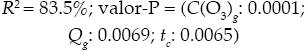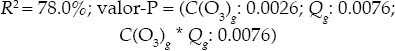 - Salmonella y Shigella (UFC/ml) = 189.0 -4.725 * C (O3 )g - 3.083 * Qg + 0.077 * C (O3 )g * Q g
