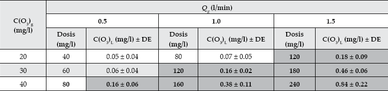 C(O3)L: concentración de ozono en el líquido; DE: desviación estándar.