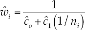 Como las varianzas de la variable dependiente σ2(Yi) no son iguales, se puede aplicar una función de ponderado (wi) que corrija tal variación, según se expone en la teoría del método de mínimos cuadrados ponderados (MCP). Tal función es óptima cuando wi = 1/σ2(Yi).