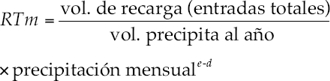 La recarga total fue calculada mensualmente (RTm) con la siguiente función (ecuación (1)):