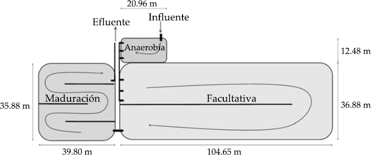 El método para el diseño del sistema de lagunas formado por tres reactores fue consultado en el manual Paquetes tecnológicos para el tratamiento de excretas y aguas residuales en comunidades rurales (Conagua-IMTA, 2007a).