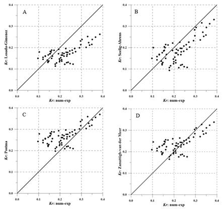 Figura 11 Curvas de ajuste: Kr = f (ξ). Los coeficientes del modelo lineal se muestran en la Tabla 1.