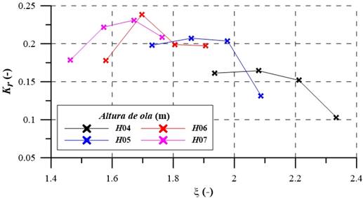 En la Figura 8 se muestran los valores de K r en función del número de Iribarren.