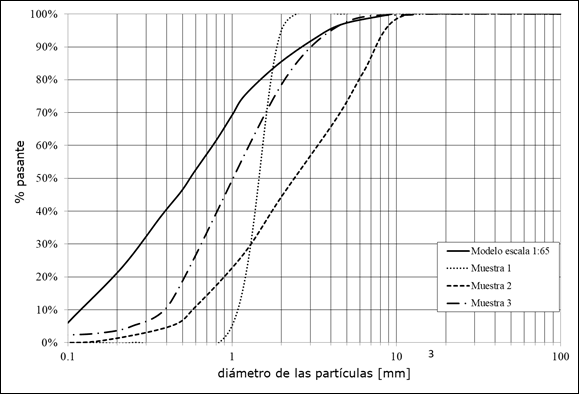 Esta tarea no es trivial y es crítica para la adecuada representación de los fenómenos erosivos en el prototipo. Se analizaron tres muestras diferentes (ver Figura 4):
