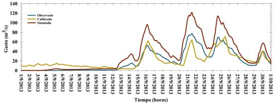 En la Figura 4 se presenta la comparación gráfica de los hidrogramas observado, simulado y calibrado.