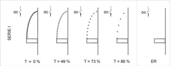 Para el presente análisis se consideraron los experimentos agrupados en la Serie I, donde se contemplan distintos grados de transparencia del muro guía (T).