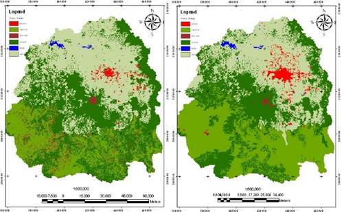 El mapa de uso de suelo se obtuvo de la clasificación supervisada de las imágenes de satélite, para lo que se utilizó el algoritmo de máxima verosimilitud como regla de decisión para la clasificación de las imágenes en los dos periodos.