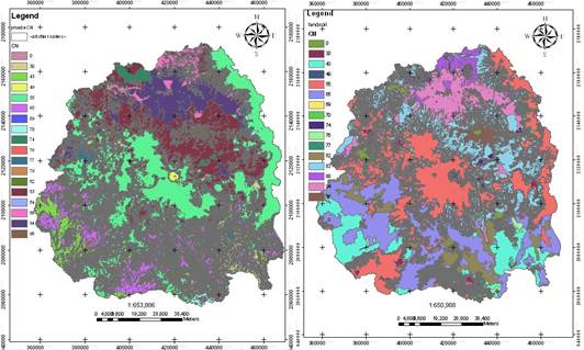 El factor C debido a la cobertura vegetal y manejo del suelo está relacionado con el mapa de uso de suelo. El mapa del factor C tiene valores que van entre 0 y 1, teniendo valores más bajos en los lugares donde existen bosques con buena cobertura, como en las subcuencas; Río del Valle, Toluca, Río Verde y Progreso, que descienden del Nevado de Toluca y de la Sierra de las cruces (noreste del área de estudio); por su parte, en el Valle y hacia Temazcalcingo, los valores de C son cercanos o iguales a 1 debido a la escasa cobertura vegetal, donde se localizan las subcuencas de Progreso-Huautla, Temascaltepec, Valle de Bravo, San Felipe y Medio Ixtapan.