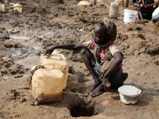 Figura 1 Marzo 22, 2012: una niña captura agua turbia de una excavación cercana a un pozo que se ha secado en Jamam, South Sudan. Fuente: Hannah McNeish/AFP (Sim, 2015).