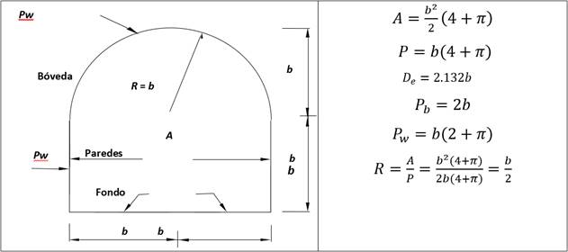Se considera que las pendientes de fricción en el fondo de la sección son iguales a las que se presentan en paredes y bóveda:
