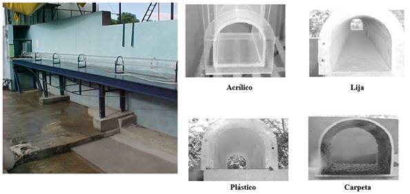 Los autores de este artículo (Marengo, 2016) hicieron una experimentación con modelos que se construyeron para analizar el comportamiento del flujo de agua en túneles con rugosidad compuesta. Los materiales utilizados fueron acrílico, lija, plástico y carpeta.