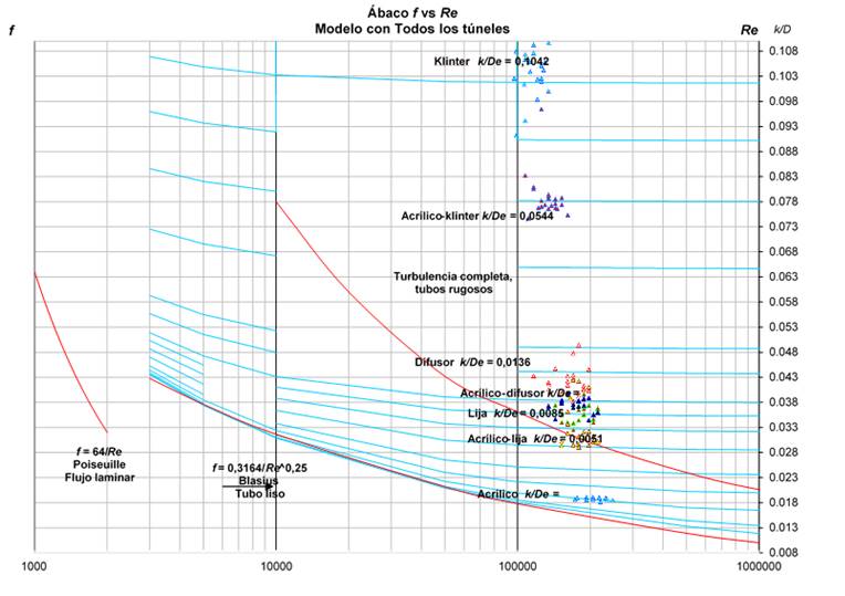 Ábaco de Moody, por lo que los números de Reynolds estudiados son