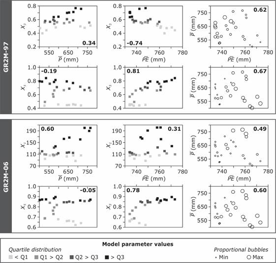 Table 1 Distribution of GR2M-97 and GR2M-06 parameters optimized on 26 calibration periods of 5-yr length (1916-1945).