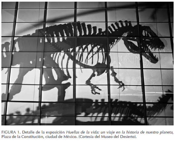 Reseña de la exposición paleontológica Huellas de la vida: un viaje en la historia de nuestro planeta, organizada por el Museo del Desierto, Saltillo, y el Gobierno del Distrito Federal (GDF), la cual fue presentada en la Plaza de la Constitución, Zócalo, de la ciudad de México, del 23 de mayo al 30 de agosto de 2009. Aborda las ambivalencias del uso cultural y recreativo de los espacios públicos en el contexto de espectáculos masivos, así como el rigor o la flexibilidad argumental con que se conciben muestras relacionadas con la divulgación de la paleontología, analizando la posible neutralidad ideológica que se supone en esta disciplina y su presentación pública. Asimismo, reflexiona sobre la tensión que el discurso museográfico manifiesta entre lo auténtico y su réplica, y las paradojas que se revelan cuando las exhibiciones sobre escenarios del pasado se vinculan con asuntos públicos contemporáneos.