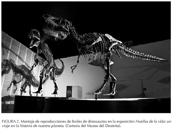 Review of the palaeontology exhibition Huellas de la vida: un viaje en la historia de nuestro planeta, organized by the Museo del Desierto, Saltillo, and the Distrito Federal Goverment (GDF), which was shown at the Plaza de la Constitución, Zócalo, Mexico City from May 23rd to August 30th 2009. It focuses on the ambivalence regarding the cultural and leisure use of public spaces employed for popular mass spectacles, as well as the exposition discourse's rigor and flexibility devoted to the dissemination of palaeontology, analyzing the potential neutrality of this discipline and its public representation. It also explores the tension of the museographic discourse regarding authentic objects and reproductions, including the paradoxes exposed by exhibitions concerning the past that are related to contemporary public issues.
