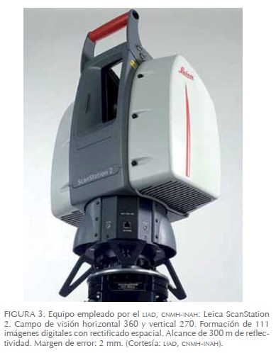 A partir del mes de mayo del año 2009, el Instituto Nacional de Antropología e Historia (INAH), a través de la Coordinación Nacional de Monumentos Históricos (CNMH), instrumentó la tecnología escáner láser para fortalecer el conocimiento científico y tecnológico en materia de bienes culturales y, de acuerdo con este fin, formar una base de datos con modelos digitales de los monumentos históricos y arqueológicos emblemáticos del país. Se trata de una tecnología de postrema generación -cuyas primeras aplicaciones se hicieron en la industria petrolífera- que en los últimos años ha simplificado su manejo y portabilidad. Ponerla en uso hoy para el estudio y salvaguardia del patrimonio edificado constituye una labor institucional sin precedentes.
