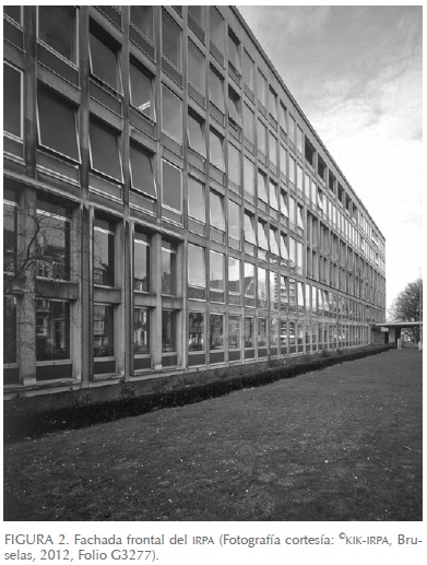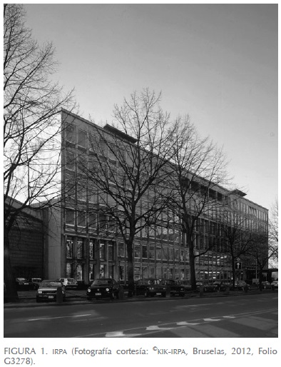 Justo éste es el caso del Instituto Real de Patrimonio Artístico, cuya evolución entraña de forma evidente estos cambios de percepción. Desde 19001 se creó el Taller de Fotografía de los Museos Reales de Arte e Historia (Atelier de Photographie des Musées Royaux d'Art et d'Histoire, MRAH) que 20 años más tarde se conformaría como el Servicio de Documentación Belga (Service de Documentation Belge): el antecesor directo de la actual fototeca que alberga el KIKIRPA. Fue en 1934 cuando Jean Capart, jefe de conservación de los MRAH, nombró a Paul Coremans como responsable de la creación de un laboratorio de investigaciones físicoquímicas. Después de la segunda guerra mundial, en 1948 se formalizó la creación de los Archivos Centrales Iconográficos de Arte Nacional y el Laboratorio Central de los Museos de Bélgica (Archives Centrales Iconographiques d'Art National et le Laboratoire Central des Musées de Belgique), llamados comúnmente ACL, como una institución independiente de los MRAH y consagrada completamente al inventario, al estudio científico y la conservación del patrimonio belga. Finalmente, en 1957 dicho organismo tomó el nombre de Instituto Real de Patrimonio Artístico (Koninklijk Instituut voor het Kunstpatrimonium/Institut Royal de Patrimoine Artistique, KIKIRPA), reconocido como una de las 10 instituciones científicas federales en Bélgica, estado en el que permanece en la actualidad (Figura 2).