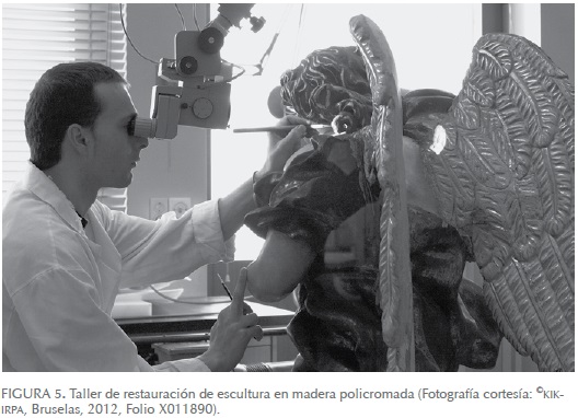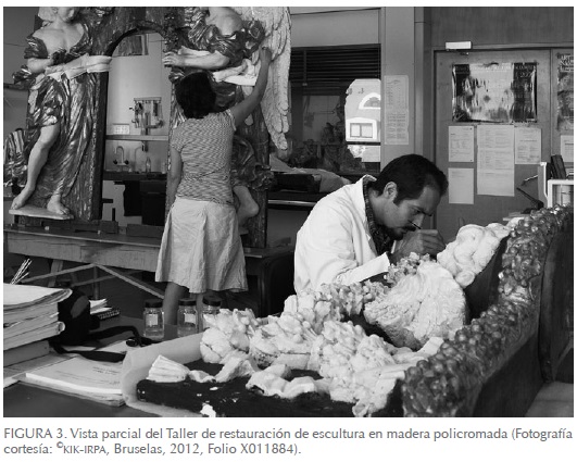 Probablemente la forma más sencilla de abrir una ventana a la realidad de una estancia de perfeccionamiento del KIKIRPA sea hablar de las actividades que se desarrollan durante ella. En mi caso, la estancia original de ocho meses se extendió a once y cubrió diversas actividades asociadas a la labor del taller de investigación, restauración y conservación de escultura en madera policromada (Figura 3).