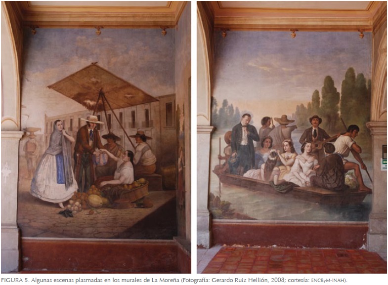 La buena preservación de los murales y su historia también es digna de hacerse notar. En primer lugar, la ejecución del programa pictórico deriva de un contexto específico: el encargo del propio dueño de la casa y hacendado de la región, coronel Francisco Velarde, quien tenía la intención de invitar y recibir al recién llegado emperador Maximiliano de Habsburgo, una vez que se impuso el Segundo Imperio en nuestro país. En segundo término, sabemos que desde su edificación hasta hoy en día la Casa de Cultura de La Moreña ha experimentado cambios de uso que han derivado tanto de acontecimientos nacionales como de situaciones particulares (Ramírez 2000ab).