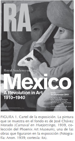 La Royal Academy of Arts de Londres (RA, Academia Real de las Artes) presentó del 6 de julio al 29 de septiembre de 2013 Mexico: A Revolution in Art, 1910-1940 (México: una revolución en el arte, 1910-1940, en adelante, Mexico...), exposición temporal curada por el doctor Adrian Locke, especialista en arte latinoamericano por la Universidad de Essex, Inglaterra, y curador de la RA, distribuida a lo largo de cuatro salas, con 120 obras (esencialmente, pinturas y fotografías) de artistas mexicanos y extranjeros activos en el territorio nacional entre las décadas señaladas.