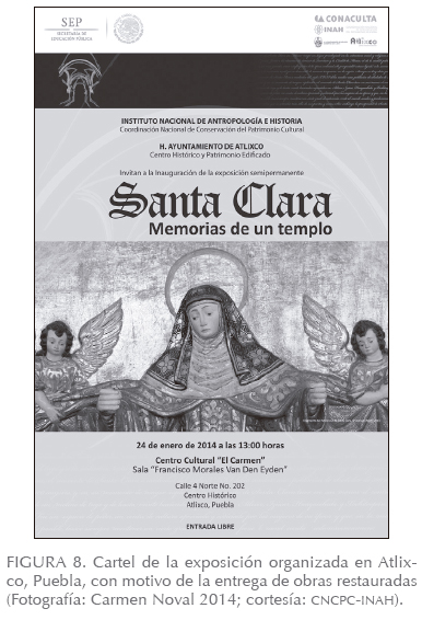 Como la difusión del trabajo realizado por la CNCPC-INAH es fundamental, tanto en materia de rendición de cuentas como en la de la transparencia que se debe a la ciudadanía para hacerla partícipe del patrimonio que le pertenece (Figura 8), en distintos medios se divulga información veraz, precisa y de buena calidad sobre la conservación. En esta línea, su página web (CNCPC-INAH 2014b) constituye un mecanismo fundamental.