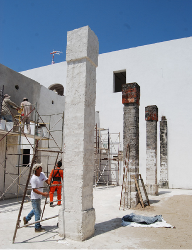 Figura 12 Culminación de los revoques de cal y arena antes de la reintegración del techado de armadura y teja de la antigua área de almacenamiento (Fotografía: Luis Fernando Guerrero, 2015).