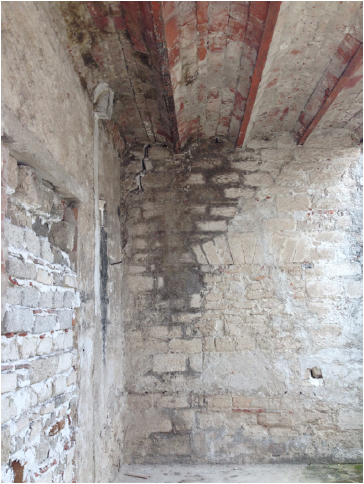 Figura 5 Los paños sin enlucir que presentaban irregularidades derivadas de la materia prima y la calidad de la mano de obra original (Fotografía: Luis Fernando Guerrero, 2015).