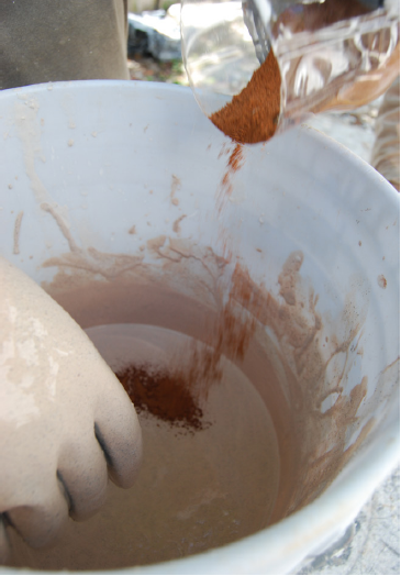 Figura 6 Preparación de lechadas puzolánicas de cal, arena fina y polvo de ladrillo (Fotografía: Luis Fernando Guerrero, 2015).