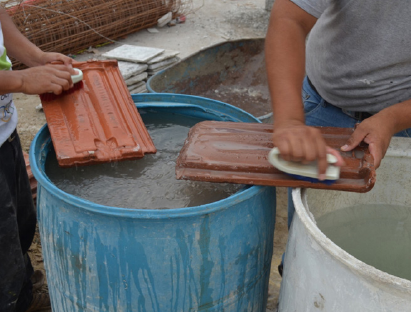 Figura 11 Proceso de integración de pisos de loseta de pasta (Fotografía: Luis Fernando Guerrero, 2015).