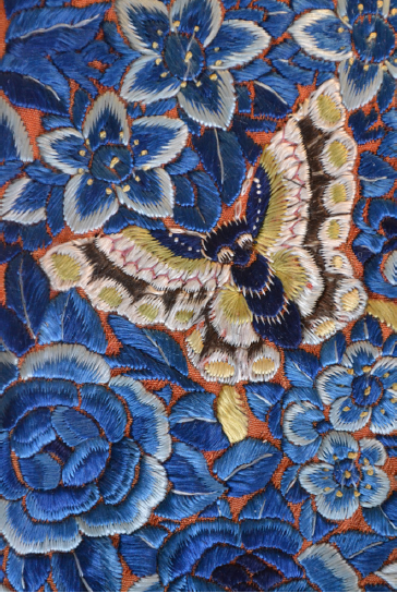 Figura 3 Detalle del panel central de bordados de la falda china. Reproducción Autorizada por el Instituto Nacional de Antropología e Historia (Fotografía: Citlalli Itzel Espíndola Villanueva, 2013; cortesía: STCRT, ENCRyM-INAH, MNH-INAH).