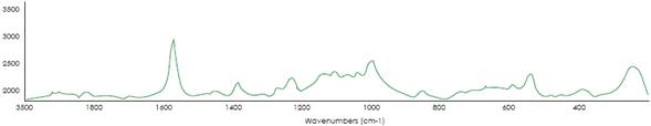 Figura 9 Espectrograma Raman de hilos de seda teñidos con añil (Cortesía: Instituto de Física [IF-UNAM] 2013).