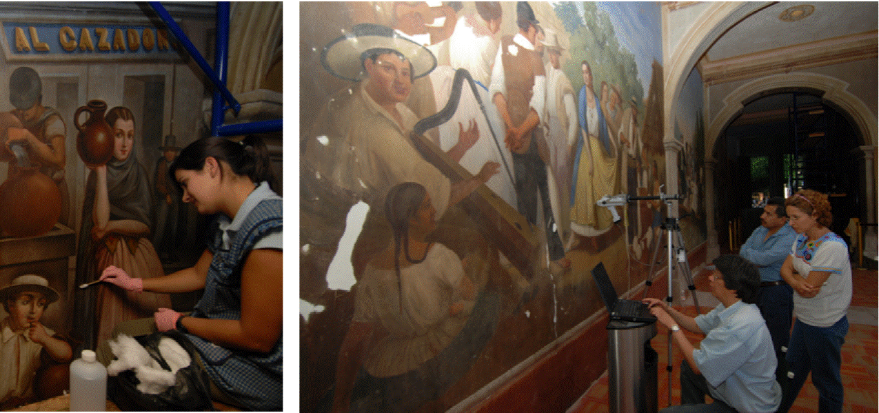 Figura 16 Procesos de restauración de la imagen de las pinturas murales de La Moreña, temporada 2007-2009.